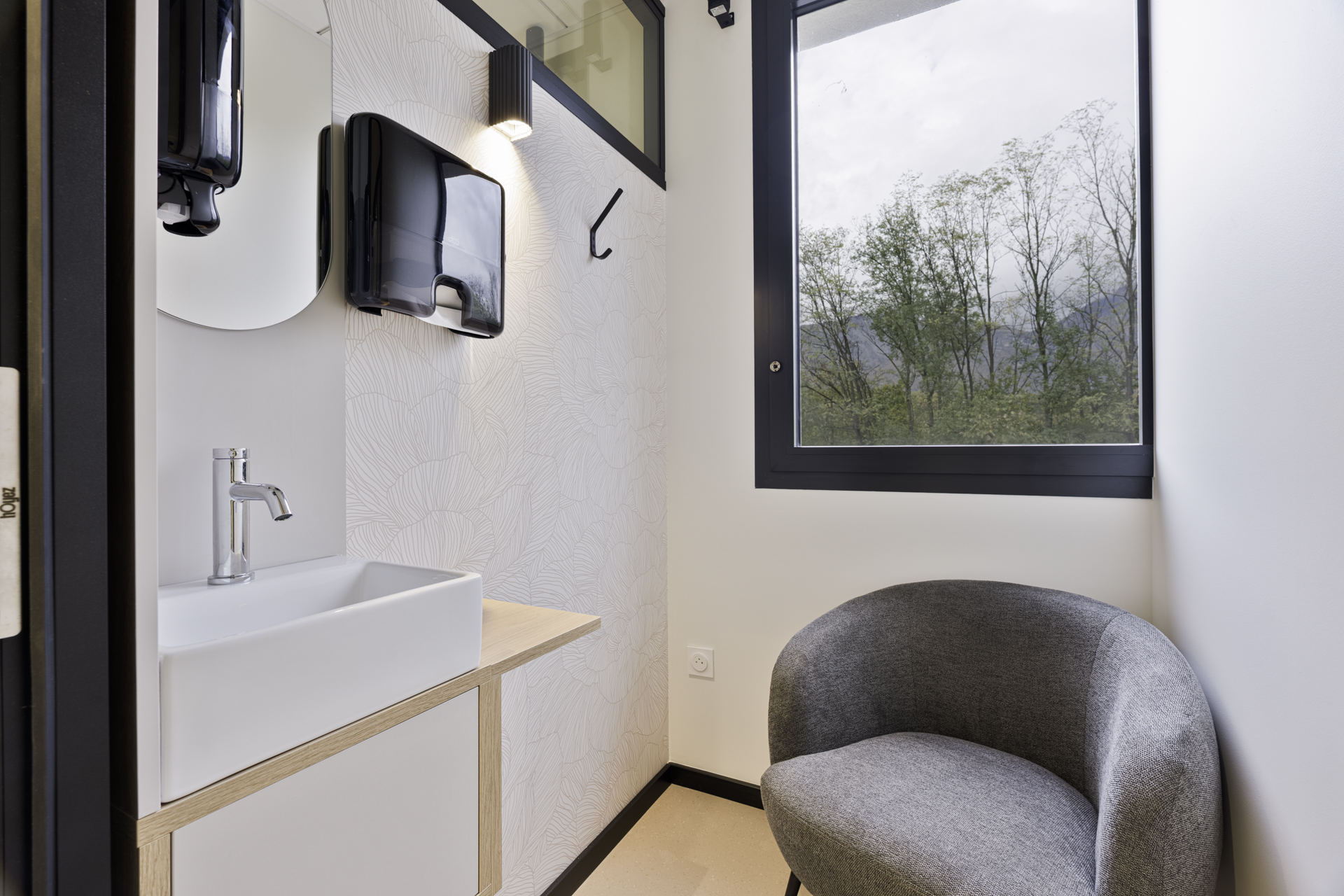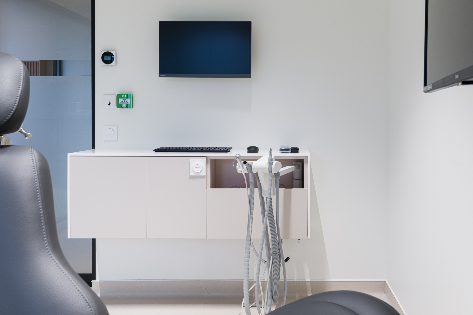 Un mobilier sur mesure a été conçu avec une attention particulière sur l’ergonomie et l’esthétique, afin d’allier confort d’utilisation, fonctionnalité et qualité visuelle.