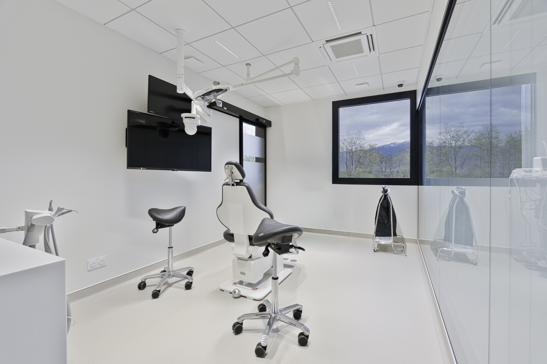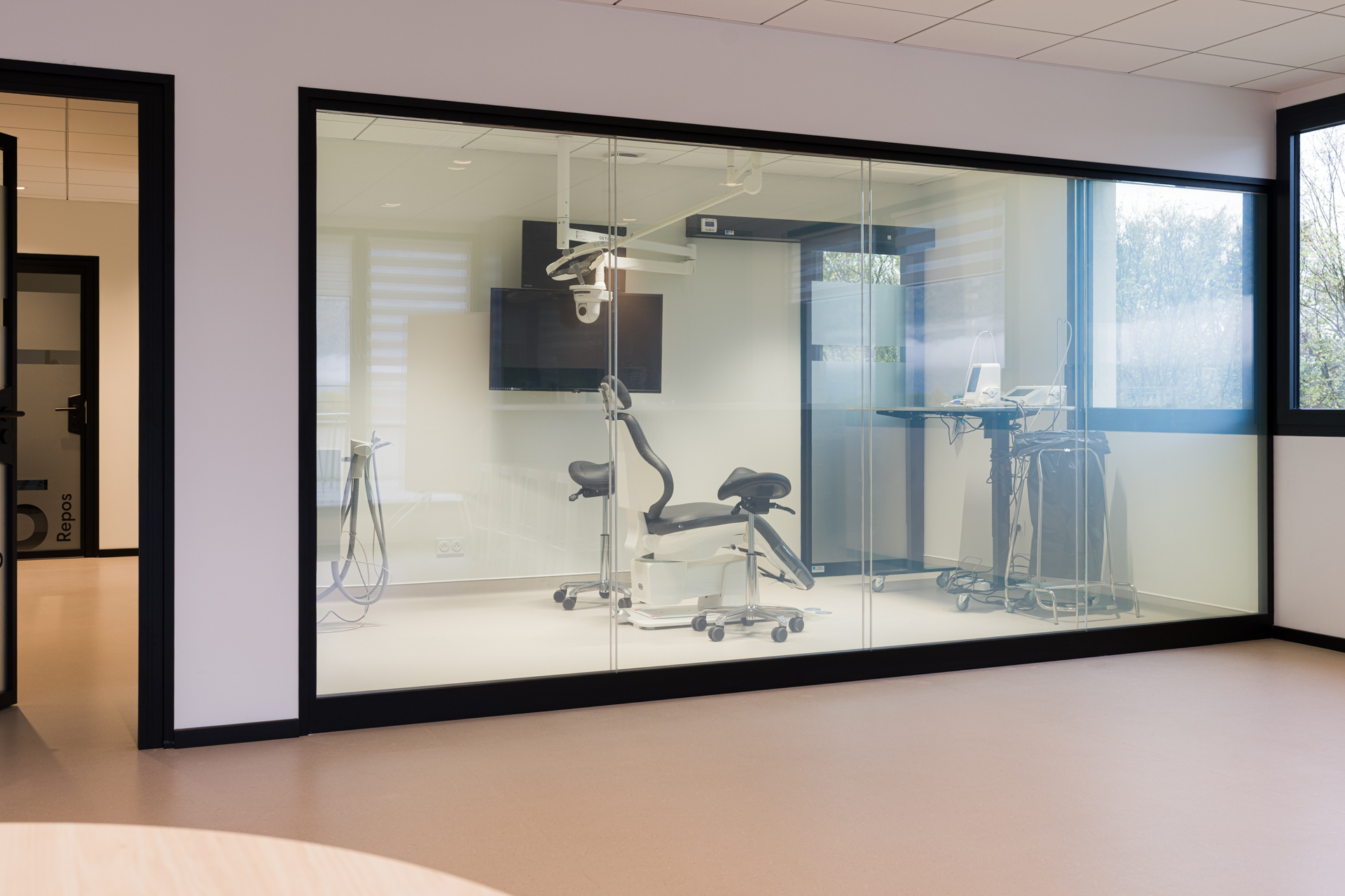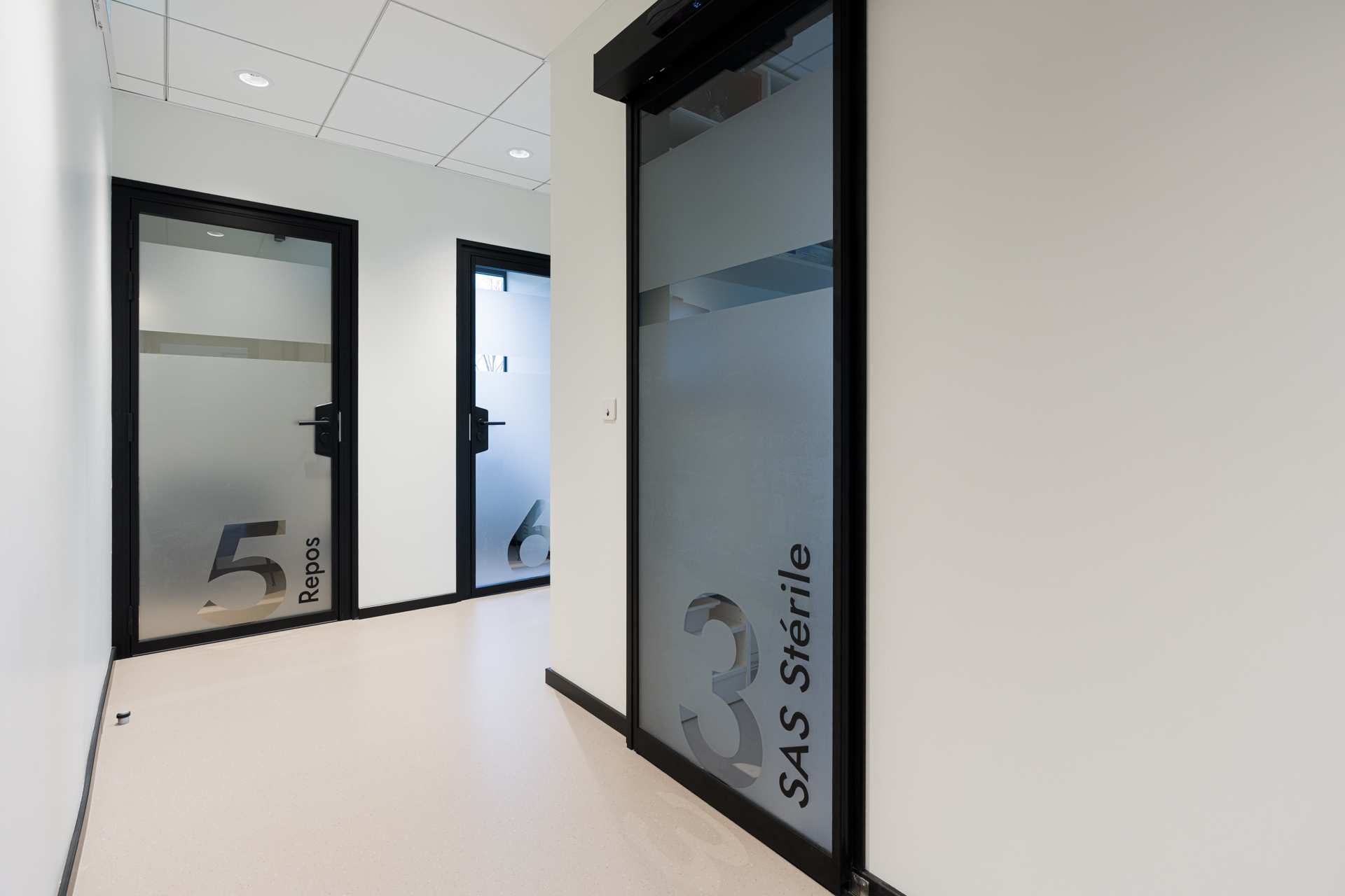 Dans le réaménagement de cet espace, l’objectif était de créer deux nouveaux blocs de chirurgie. L’un est désormais équipé d’une vitre opacifiante permettant l’observation et la formation des équipes soignantes.