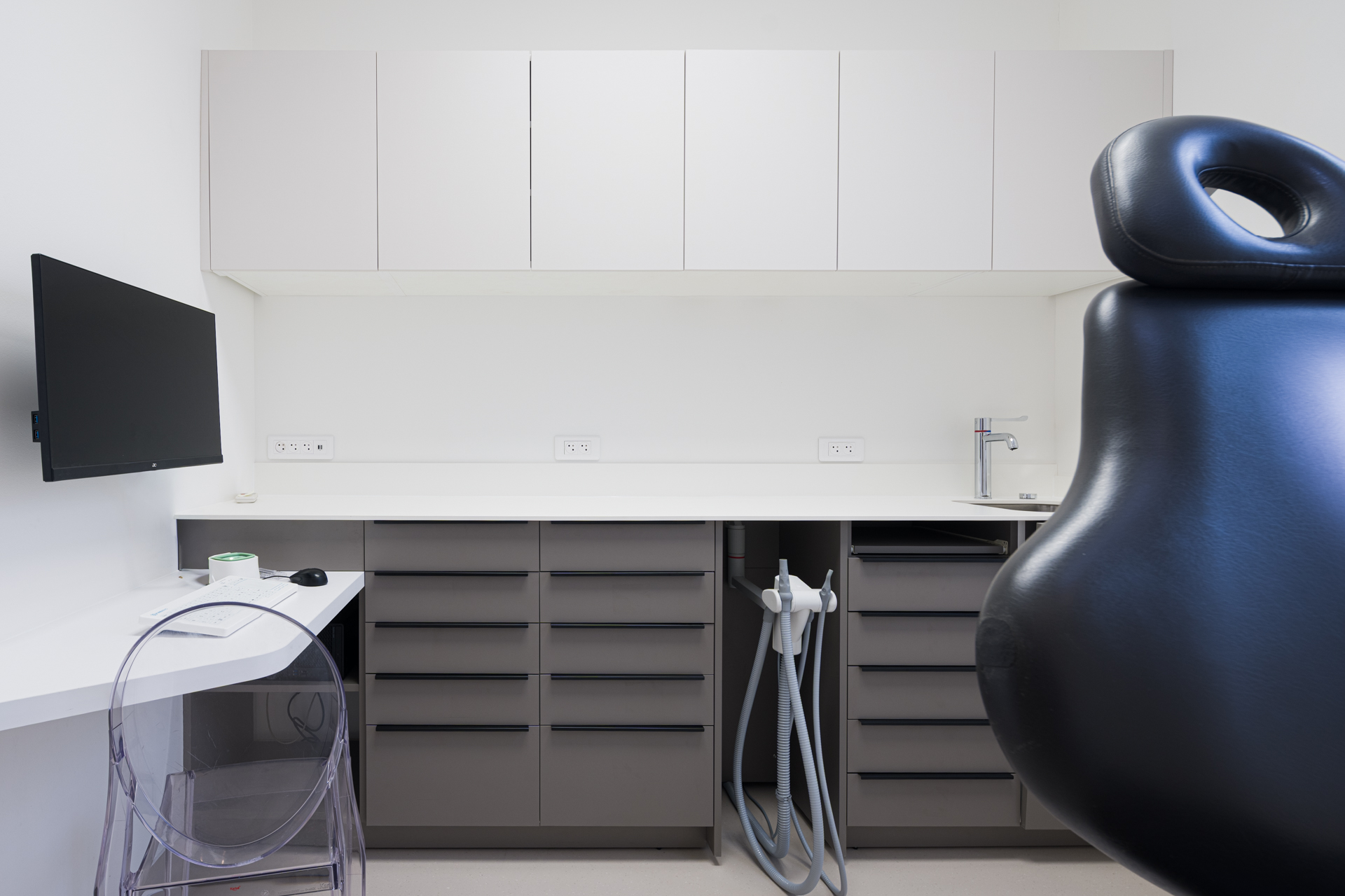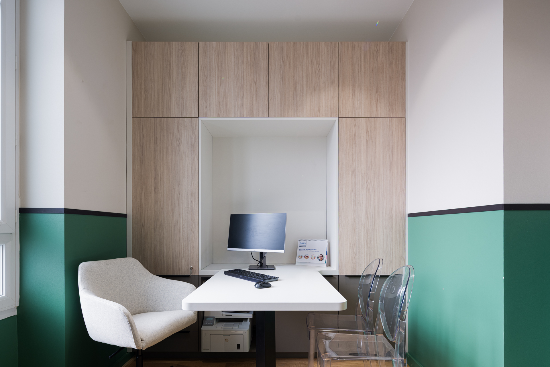 Le mobilier sur mesure a été conçu pour répondre aux besoins des praticiens tout en facilitant le travail des assistantes.