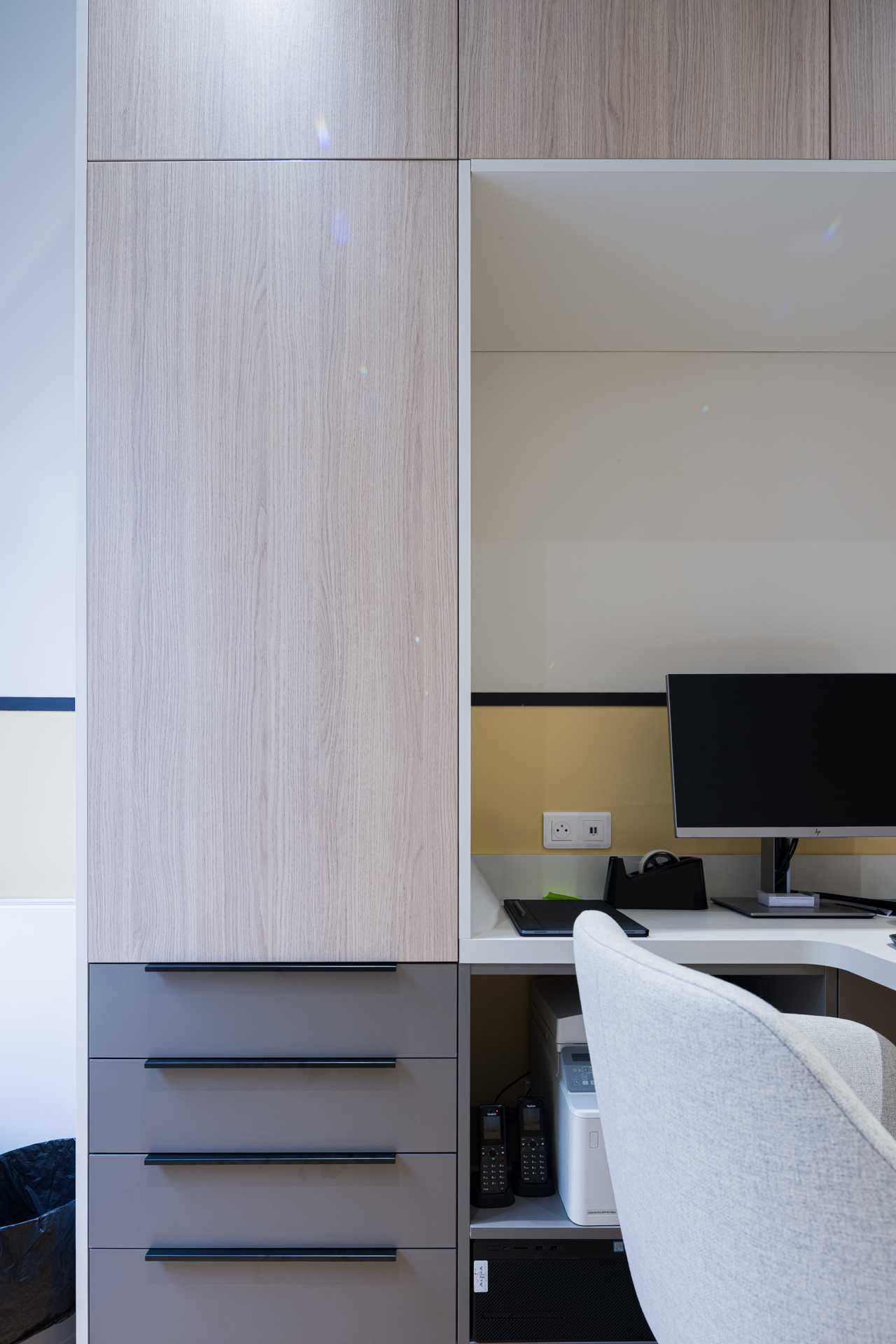 Lors de la rénovation partielle de ce cabinet, l’objectif était de s’adapter à l’esthétique / charte existante de l’existant pour une continuité visuelle sans percevoir les différentes phases de rénovation.